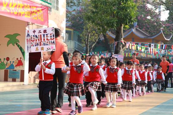 隆重而又精彩的运动员入场仪式拉开了帷幕,各班穿着各国民族服装,挥动着代表国国旗,跳着舞,喊着口号,俨然是来到了联合国的运动场。