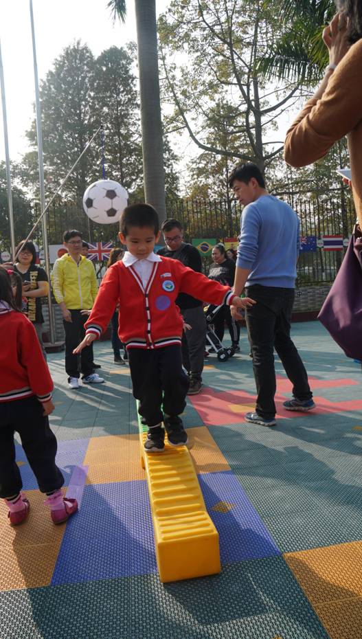 此次活动以国际文化体验为主题,采用个人项目竞技、亲子游戏形式,分三个年级组进行比赛。内容结合了各国的特色游戏,形式多样,集趣味性、参与性为一体。有活泼的“袋鼠跳”、奔忙的“滚轮胎”、忙碌的“拍皮球比赛”、精彩的“巴西独木桥”、需谨慎前行的“螃蟹夹球”等。运动场上,孩子们一展身手、家长们玩得不亦乐乎。班级间的拔河比赛为运动会推向高潮,选手们完全不顾忌汗水,齐心协力,在孩子和家长们呐喊助威声、鼓掌喝彩声和欢声笑语声中共享拔河带来的欢乐!
