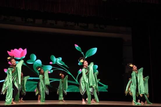 广外留学生教育学院学生带来的舞蹈、学生艺术团的中国民族乐器合奏、艺术学院舞蹈专业学生的中国古典舞,更是为观众带来了不同的视觉和听觉享受。啦啦操《动感宝贝,活力啦啦》将演出现场气氛推向高潮。
