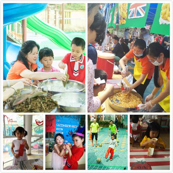 美食和游戏是“六一”活动必不可少的。演出结束后孩子们回到幼儿园,迫不及待地在世界各地风味美食中来回穿梭。游戏体验区丰富的活动,更是深深吸引着大朋友小朋友们:包粽子、粘土美食DIY、绘制城堡书签、制作印第安人头饰,还有来自荷兰教练带来的足球亲子游戏……此时的幼儿园成了欢乐的海洋,快乐、幸福洋溢在每个孩子的脸上。