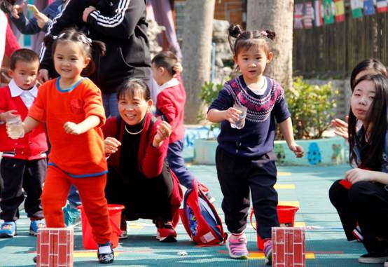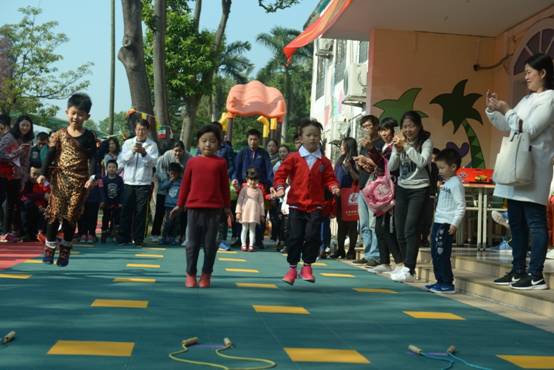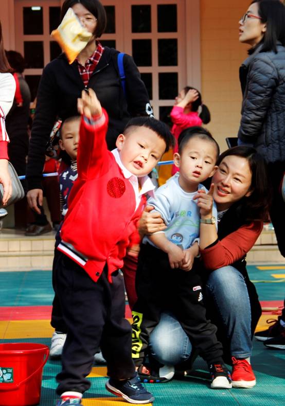 亲子项目把运动会推向高潮。家长们兴致勃勃地和孩子一起体验游戏的乐趣,运动场上加油声、掌声、笑声交杂在一起,操场上处处交织着师幼、家园其乐融融的动人景象。