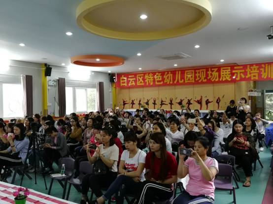 为加快白云区学前教育改革发展的步伐,本学期白云区选取11间特色幼儿园为教研培训点,我园作为白云区首批特色园,在4月26、27日上午进行特色幼儿园现场展示培训。全区的200多名园长、教师参加了此次活动。